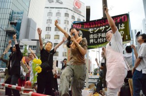On September 18, 2012 the action event was tied together with the Occupy Monsanto campaign, with a protest rally outside the offices of the US biotech giant Monsanto’s head office in Tokyo, followed by a parade that went to Ginza and the Prime Minister’s Official Residence. Occupy Monsanto is an international effort to protest against genetically modified organisms and GM food.
