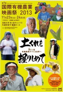 The 7th organic film festival will be held in Tokyo on November 23-24, 2013. This will be a great opportunity to catch up with recent trends and watch documentaries from Japan and abroad. The theme this year is “Holding on to the Soil” to refelct the hardships many farmers are experiencing, with special focus on Okinawa and Fukushima.