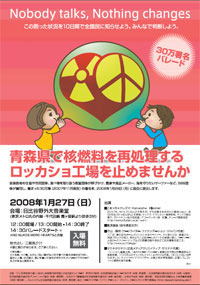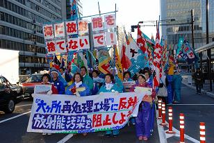 Lots of activity here in Japan against the Rokkasho Reprocessing Plant in Aomori Prefecture… 596 organisations and groups, and 2,500 people participated in the parade on Jan. 27, 2008 in central Tokyo. Over 810,000 signatures has been collected and were handed in to the government on Jan. 28, 2008.