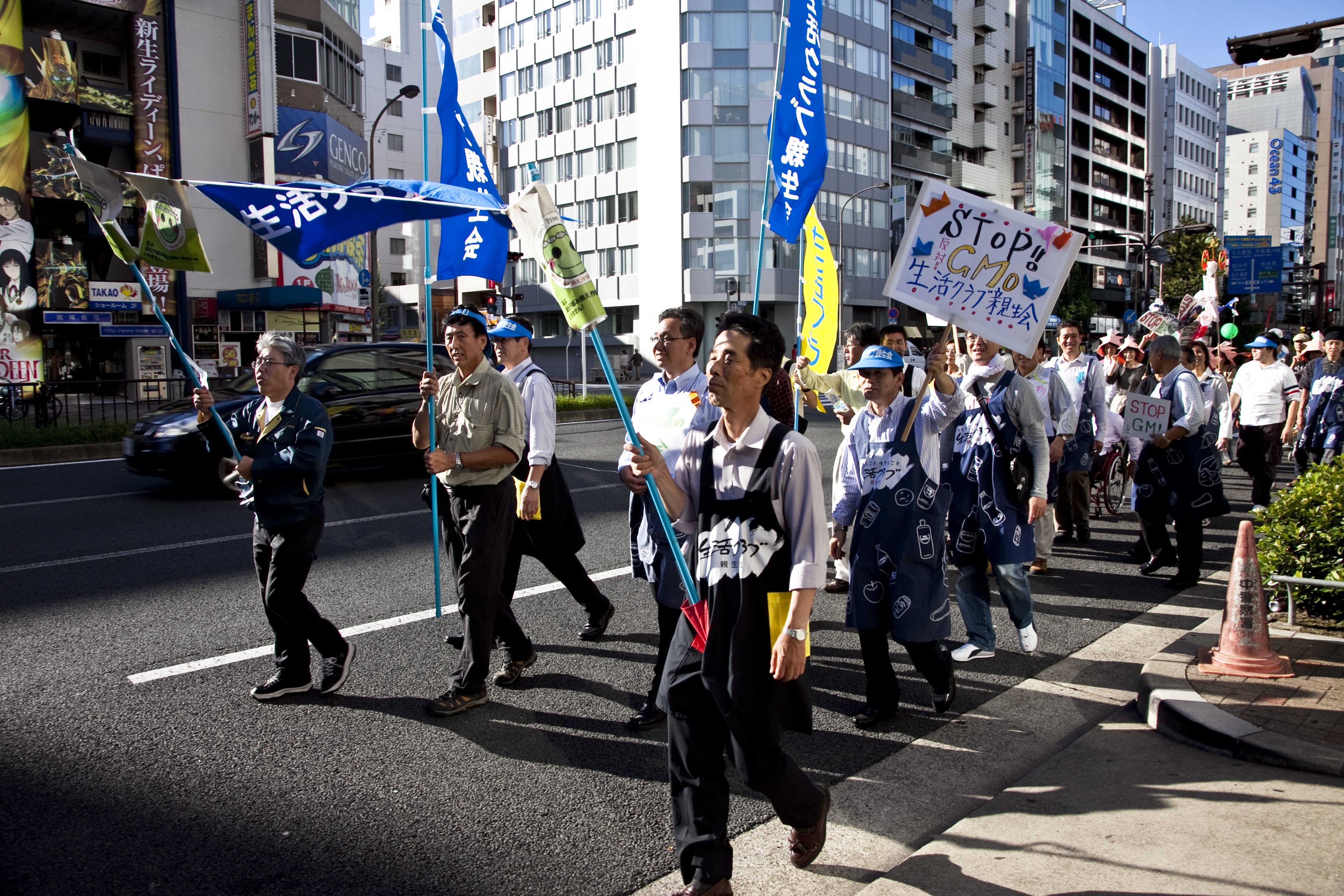 Here are some photos from the large Nagoya event on October 10, 2010 with over 1,000 participants who walked through the busy streets with banners and costumes, to protect biodiversity and protest against genetically modified organisms (GMOs)!