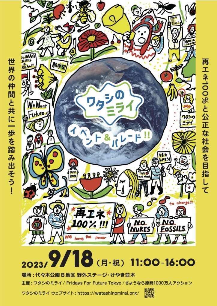 Consumers Union of Japan participated in the 18 September 2023 rally in Tokyo, protesting against nuclear power, for 100% renewable energy.